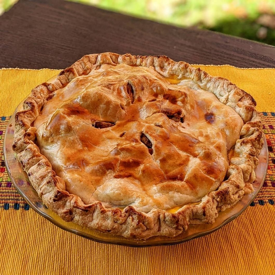 - Place your pie onto a baking sheet and bake for 40-45 minutes. Halfway through, place some aluminum foil around your outer crust to prevent over-browning.