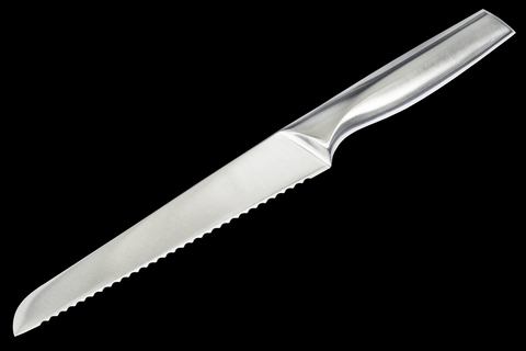 Most cakes will come out of the oven with a domed top that you will need to trim off for level stacking. There is no better tool than a serrated knife. Gently guide the serrated knife through the cake using long strokes, starting from the base and working to the tip. Do not continue sawing in the other direction but instead, gently reinsert the knife and start a new stroke. You can also use your rotating cake stand to help.